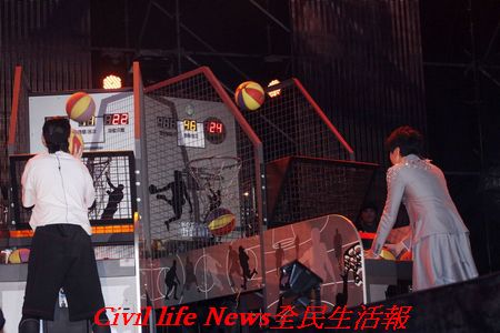 宣布舉辦新歌演唱會至今,始終未公布嘉賓人選,歌迷也相當好奇。終於在昨晚正式演出揭曉請來嘉賓是同門師兄“亞洲新人王”蕭敬騰。JJ與老蕭合唱了倆人共同偶像邁克爾傑克遜的《Black Or White》,JJ一身帥氣的灰色燕尾服西裝亮相,蕭敬騰的出場籃球裝令臺下歌迷“驚艷”不已,兩人歌曲一合唱完,JJ開口說:“好像自從我加入華納音樂後,我和你的一哥之爭話題就沒停過,不如我們今天就在這公開的舞臺上把話講開,到底誰才是華納一哥!只見臺下歌迷們尖叫連連,露出不可思議表情。蕭敬騰也信心滿滿的回應說:“好啊,誰怕誰!現場準備兩架籃球機,林俊傑還故意說那就來比“誰得分數多,誰以後就是一哥?只見兩人不分高下時間到了還拼命投籃,讓這兩位人氣天王玩得不亦樂乎。