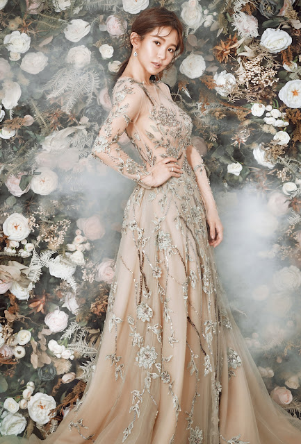 拍攝現場穿上工作團隊為她準備的Jasmine Galleria Taipei高級訂製白紗,瑤瑤舉手投足滿是自信大方,配戴DE BEERS及PIAGET的千萬珠寶更毫無懼色,早已是星光紅毯常客的她,非常了解自己的優勢,總是能在正式場合展現滿分高衣Q;換穿JE wedding 高端手工訂製婚紗禮服的裸膚刺繡晚裝也是毫不扭捏,戴上Tiffany & Co. 3.36克拉經典六爪鑲鑽戒,搭配TIGER wedding精心打造的花牆仙氣逼人,不經意流露出她在愛情裡甜美夢幻的那一面!
