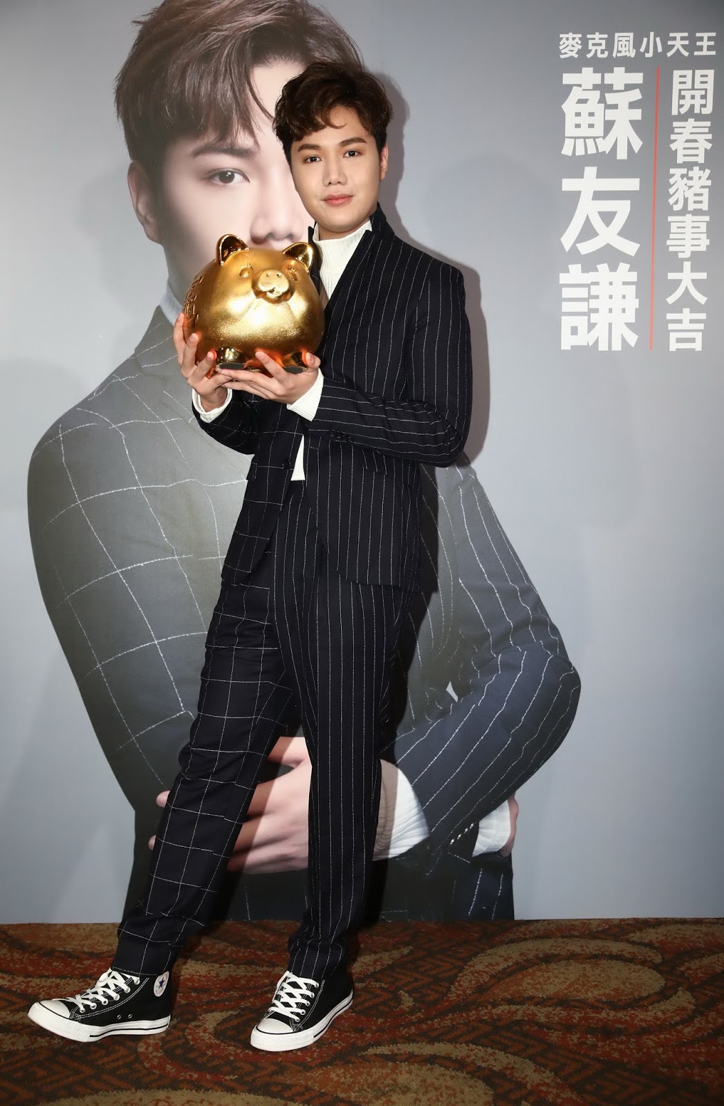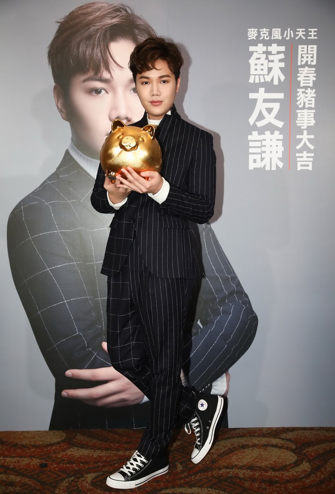蘇友謙抱金豬搶錢大作戰!麥克風小天王蘇友謙趕在開春舉行「豬事大吉」記者會,蘇友謙現身記者會,開心熱唱饒舌歌「幹大事」,並抱著大金豬直說金豬年要挑戰幹大事,搶錢大作戰,蘇友謙宣布今年將跨足「整合行銷事業」,也在台北設立分公司,宣示跨界決心,而去年表示進軍演藝圈,接受演藝課程訓練,要求完美的蘇友謙坦言日前推掉實境節目與央視的十大企業等的邀約,理由是自認還沒到位,準備好了才出發!而13歲開始投入網拍,16歲時即以行動麥克風熱銷10萬支,晉升億萬富翁俱樂部,被網友封台灣奇蹟,繼粉刺機與行動麥克風狂賣,金豬年蘇友謙將跨足「整合行銷」,對於跨界搶錢,蘇友謙說其實我一直對網拍事業有著致命的吸引,由13歲接觸網拍人生至今五年,也因這樣開啟了我的新人生,這一年來,有許多朋友在我臉書留言,頻頻邀約,希望我能給予他們產品意見,因為眾多的詢問,讓我覺得,為何不運用我自己的行銷模式,來為大家找出潛在的熱賣商機!因而決定跨界整合行銷,在豬年給自己新的挑戰!