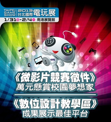 即將在寒假期間登場的「台北國際電玩展(Taipei Game Show,簡稱TGS)」,展覽主題首度公開「遊戲啟動夢想」,並訂於明(102)年一月三十一日至二月四日在南港展覽館展出。現正推出兩大主題專區「i Wall‧行動娛樂」及「WEB女僕咖啡館」報名活動,歡迎APP研發商、小型研發團隊或個人創作者踴躍參加。