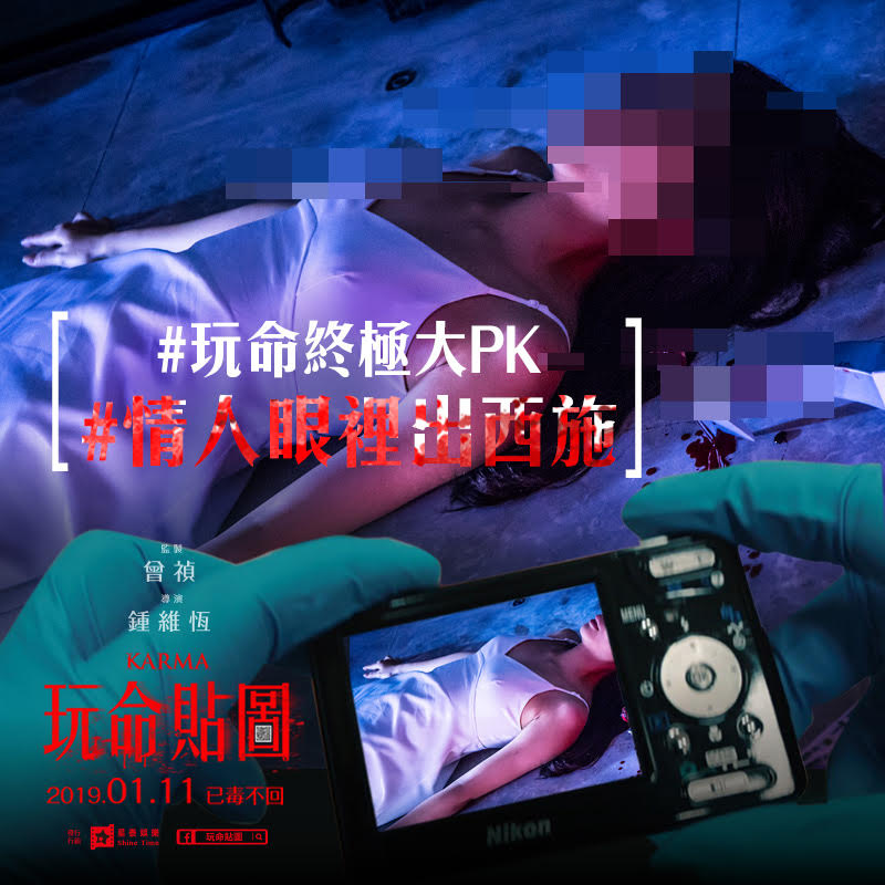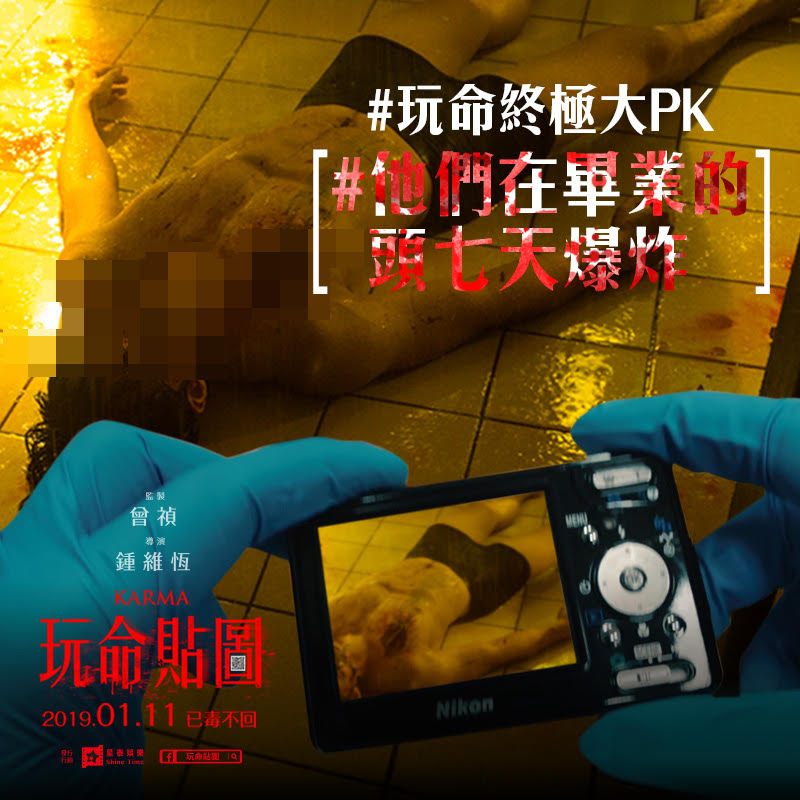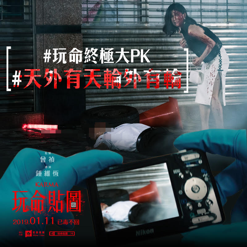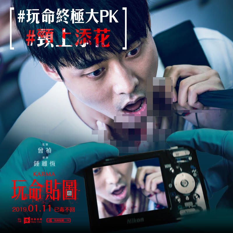 電影【玩命貼圖】由瑞陞傳播製作,曾禎監製聯手新銳導演鐘維恒打造驚悚類型片新篇章,全台好評熱賣,3天全台票房突破200萬,為最近低迷的電影市場打下一劑強心針!更一舉登上華語新片全台冠軍今片商星泰娛樂發佈好評推薦,包括黃鐙輝、Gino、宋蘋恩、蔡瑞雪、吳承洋等名人齊聲力讚,其中黃鐙輝驚嚇表示:『收到貼圖就會死,真的很恐怖!』許多觀眾看完電影對於各種華麗的領便當手法嘖嘖稱奇,片商也一口氣發表了『玩命終極大PK』揭露電影中駭人的9大死法,其中包括『#他們在畢業的頭七天爆炸』、『#天外有天輪外有輪』、『#情人眼裡出西施』、『#時來命轉』、『#炭火岩燒吃到飽』、『#熱壓三明治』、『#船過水無痕』、『#頸上添花』、『#魚仔游來游去』各種玩命死法,希望喜歡驚悚刺激的觀眾都可以進戲院體驗台版【絕命終結站】玩命的快感。電影【玩命貼圖】由星泰娛樂發行,全台好評熱映中!