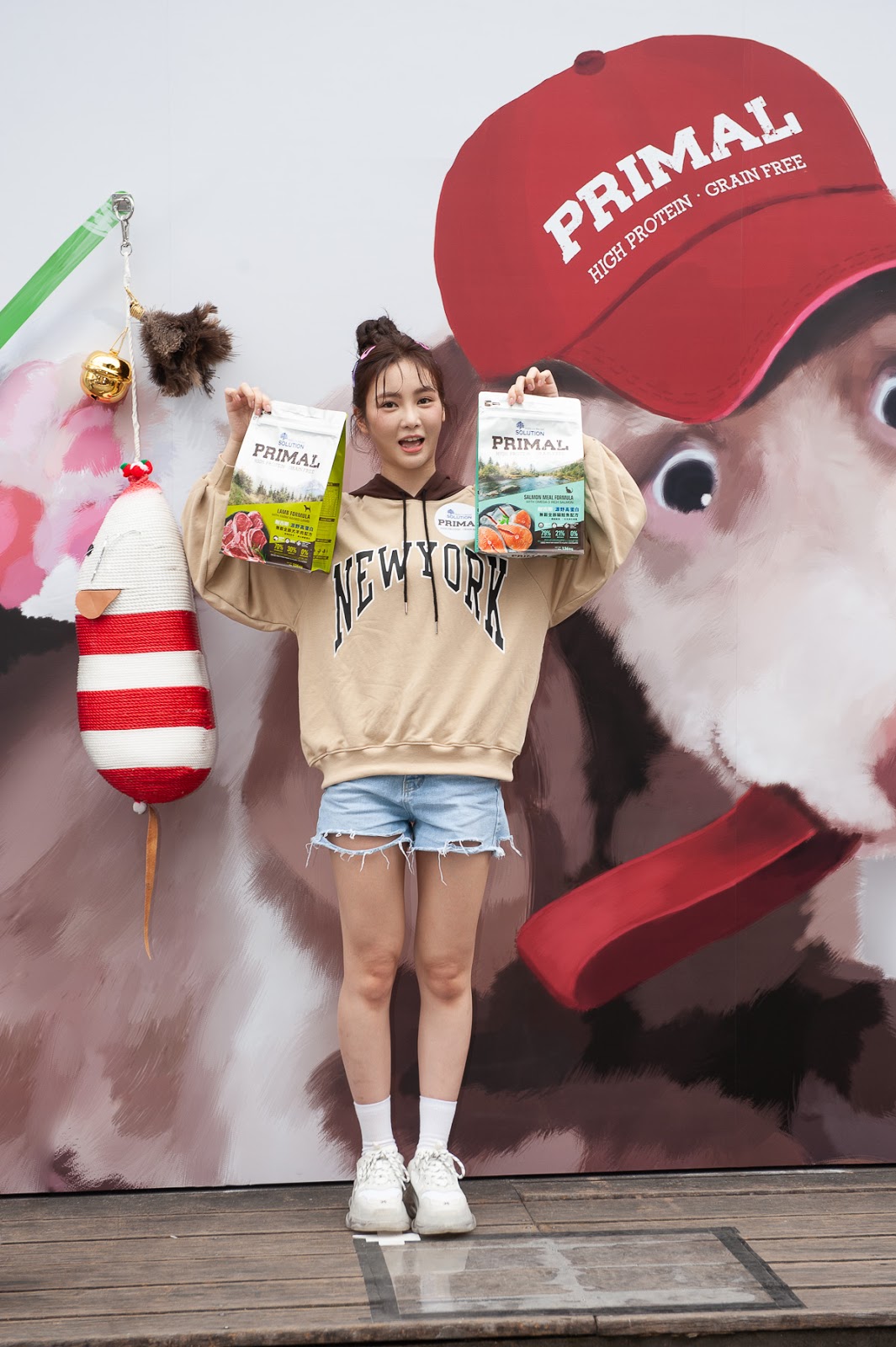 大學生女神Nikita舒子晨的現身,讓本來就已經人潮絡繹不絕的網紅牆,頓時更多人駐足圍觀。舒子晨現場發揮創意與牆面進行互動,更帶著愛犬「QQ特」一同入鏡,讓現在圍觀拍照的粉絲直呼真的太可愛了。舒子晨接受活動訪問表示,QQ特不只是寵物更是家人,因此非常重視愛犬健康,過去為QQ特挑選寵糧時,一定都挑選天然糧,而耐吉斯新推的這款源野系列,高動物性蛋白質能滿足原是肉食動物的貓狗營養需求,且特別添加機能性superfoods,對健康更有幫助, QQ特試吃了一陣子,吃得很習慣也很開心。