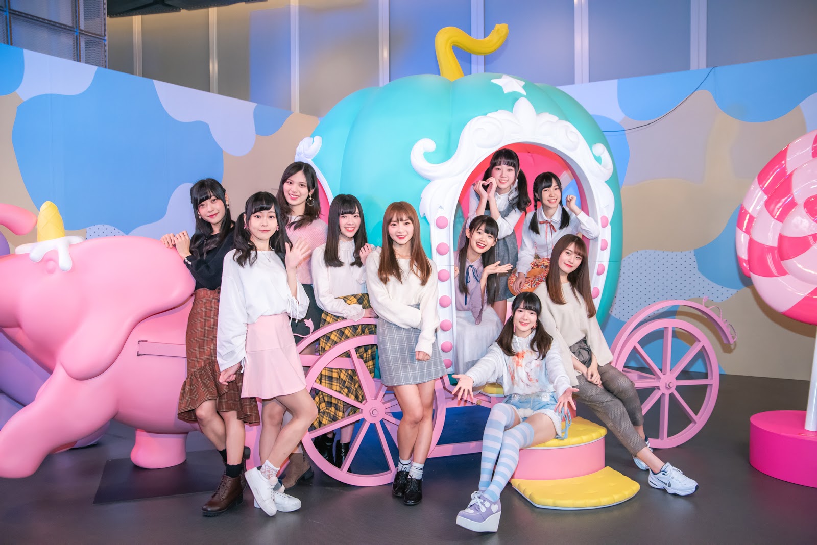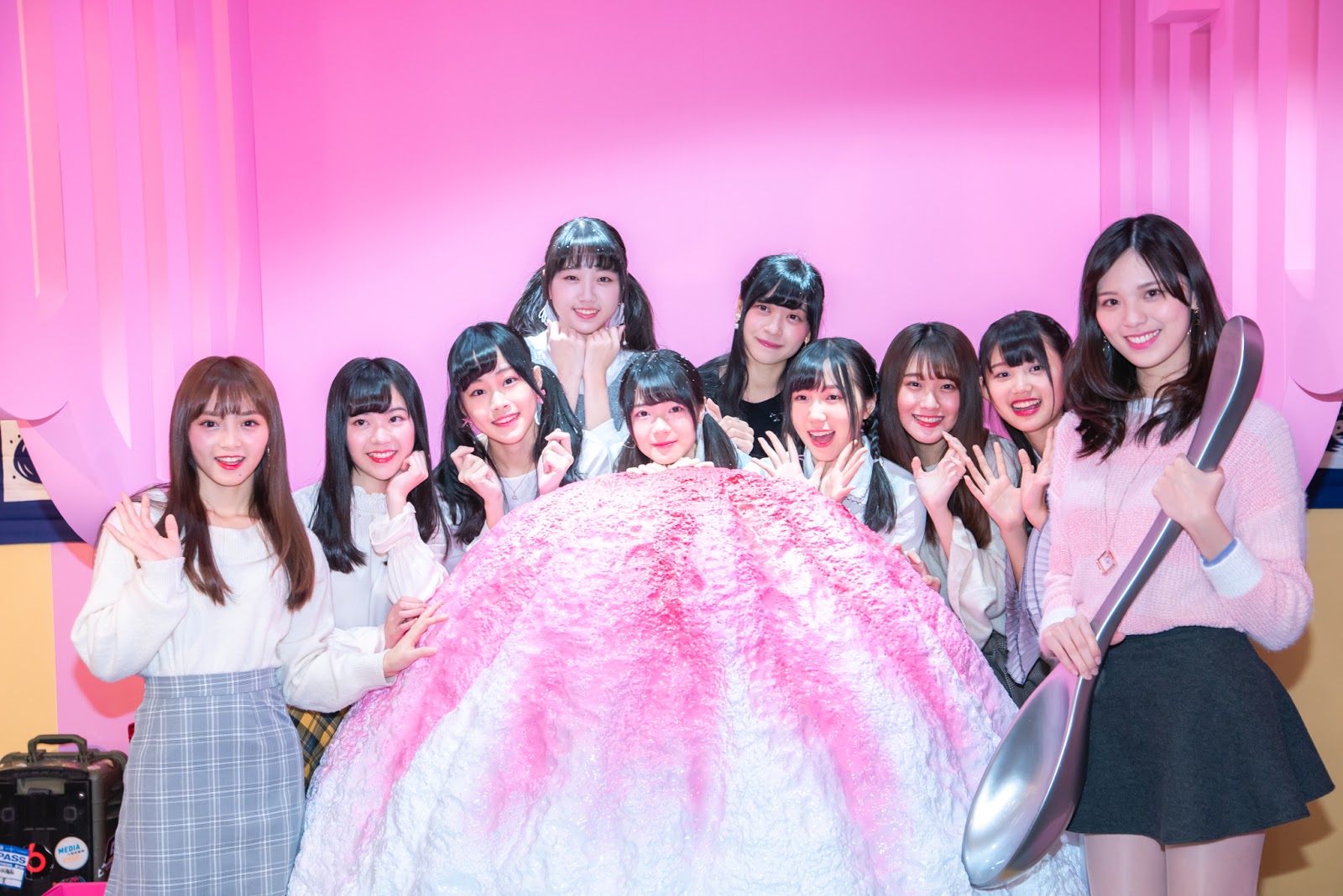 進入展場,首先看到冰淇淋旋轉木馬、粉紅挫冰機,成員們個個尖叫驚呼好可愛!大家立刻開始頭痛、脖子痛各種姿勢通通擺上一次拍不停!隊長詩雅受訪表示「這裡面我最喜歡旋轉木馬了,它是真的會轉!好久沒去遊樂園,來到這邊就好像來到遊樂園一樣好玩!而起冰淇淋對我來說就是象徵勇氣的食物,總是能讓我獲得勇往直前的力量,帶給粉絲們更多好的表演!」成員語晴則說「冰淇淋就是天氣再冷都會想吃的食物!今天真是太幸福了!我最喜歡夜光區的螢光霜淇淋,而且是棉花糖口味超級好吃,雖然每個禮拜都要量體重,但還是好想再吃!」成員潔明「我最喜歡花瓣甜筒隧道了,灑花瓣下來,真得好夢幻!我們這次單曲《櫻花瓣》沒有在這邊拍好可惜唷!另外還有實驗室可以做出自己想要口味的冰!真的好好玩!」